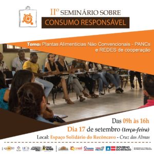 O Centro Público de Economia Solidária do Território do Recôncavo – CESOL –Território do Recôncavo, realiza nesta terça-feira (17/09), das 9h às 16h, o II Seminário sobre Consumo Responsável, cujo tema será “Plantas Alimentícias Não Convencionais – PANCs e Redes de Cooperação”, no Espaço Solidário do Recôncavo, localizado na Praça Senador Temístocles, nº 520, Centro, Cruz das Almas, BA.