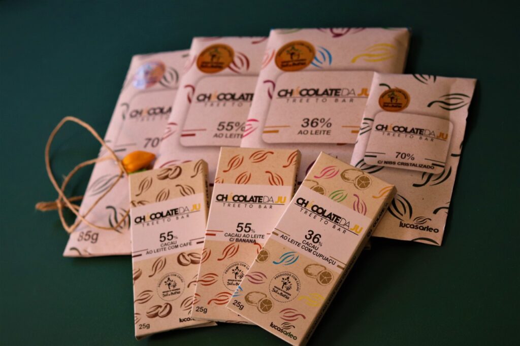 Empreendimento – O Chocolate da Ju é oriundo do cacau especial do Sul da Bahia e é cultivado por quatro gerações de produtores da família Arleo. Atualmente, o grupo trabalha com a produção de amêndoas de qualidade, certificadas pela Associação Cacau Sul da Bahia, para elaboração de chocolates do grão à barra (bean to bar). O produto usa ainda cacau cultivado no sistema agroflorestal conhecido como cabruca, onde o cacaueiro fica sob as árvores nativas da Mata Atlântica e garante um cultivo mais preservacionista contribuindo com o meio ambiente.