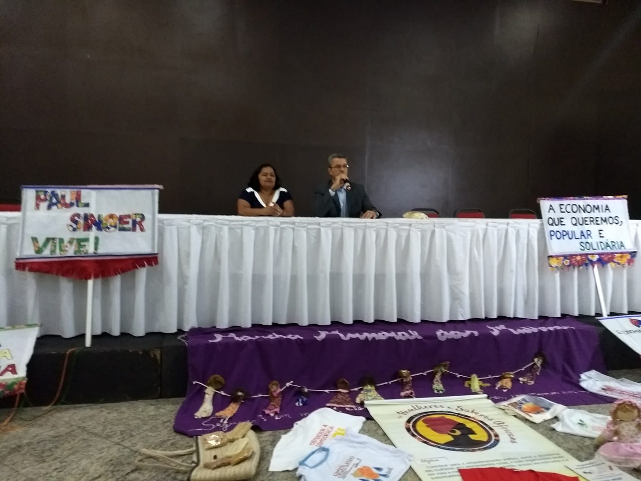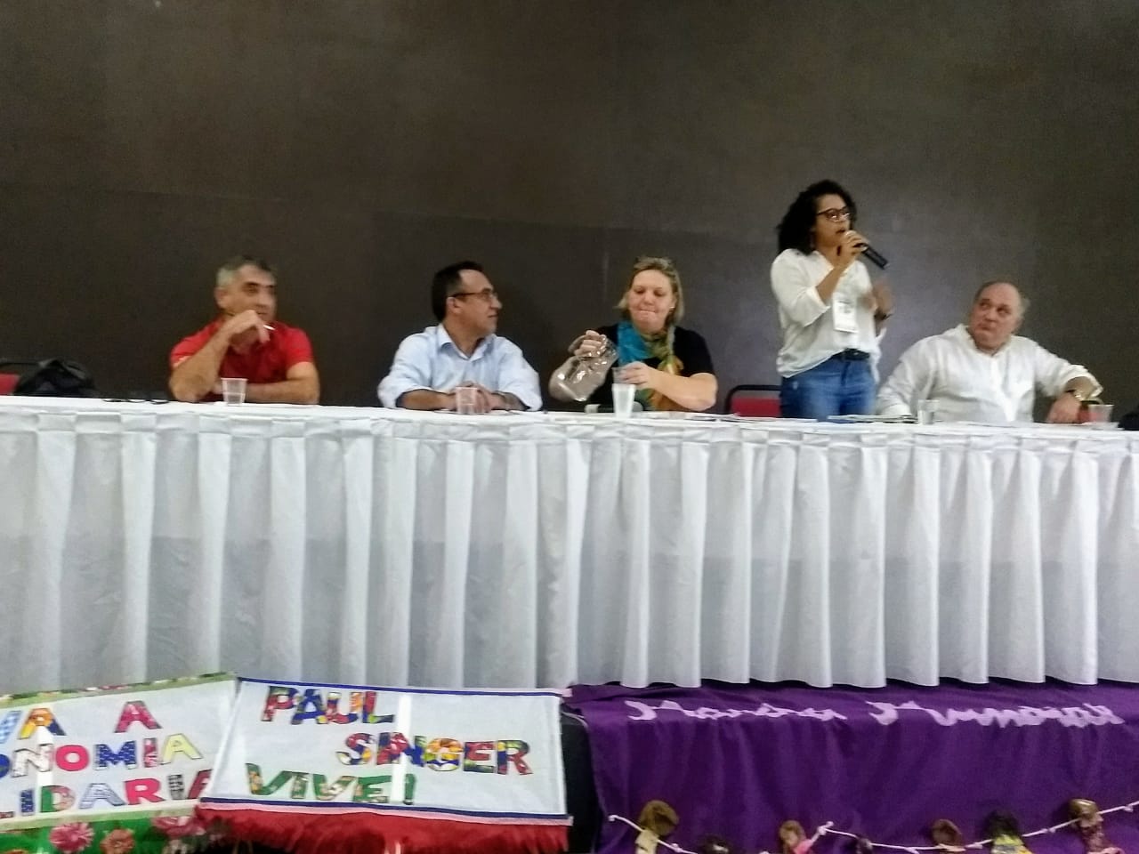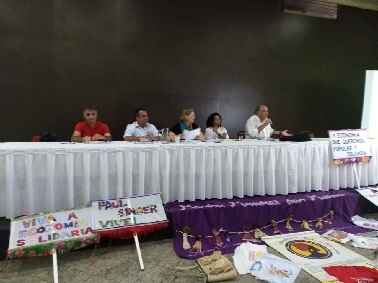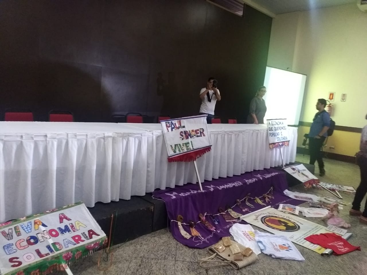 Hoje uma das mesas realizadas debateu sobre a Conjuntura Política e a Economia Solidária e contou com a ilustre participação na coordenação da mesa de Sandra Faé (Rede de Gestores de Políticas Públicas de Economia Solidária), e dos debatedores Javier Alfaya (Diretor de Cultura Fundação Maurício Grabois), Prof. Roberto Marinho (Ex Secretário Adjunto da SENAES/MTE) e atual Prof. da UFRN, Arildo Mota (Presidente da UNICOPAS) e Simaia Barreto (Fórum Baiano de Economia Solidária).