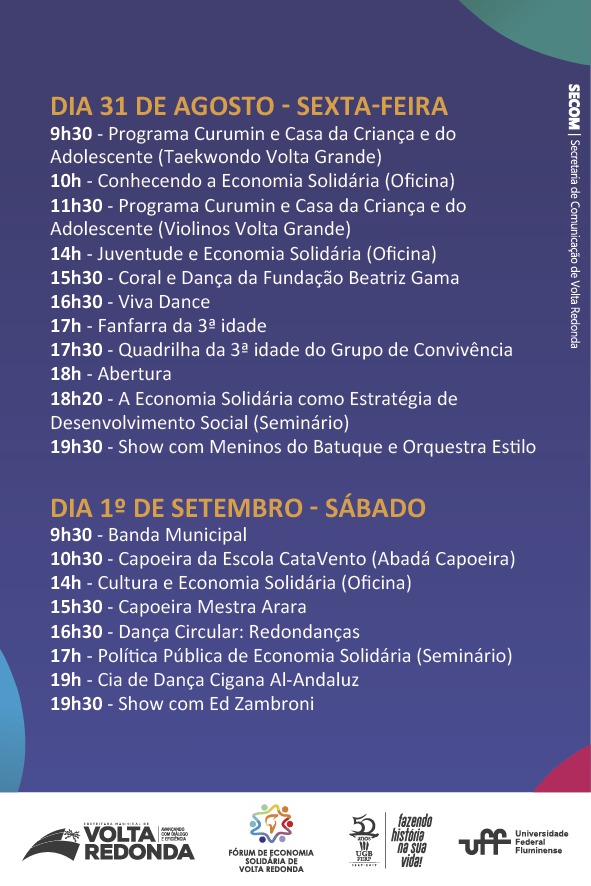 Confira a programação: