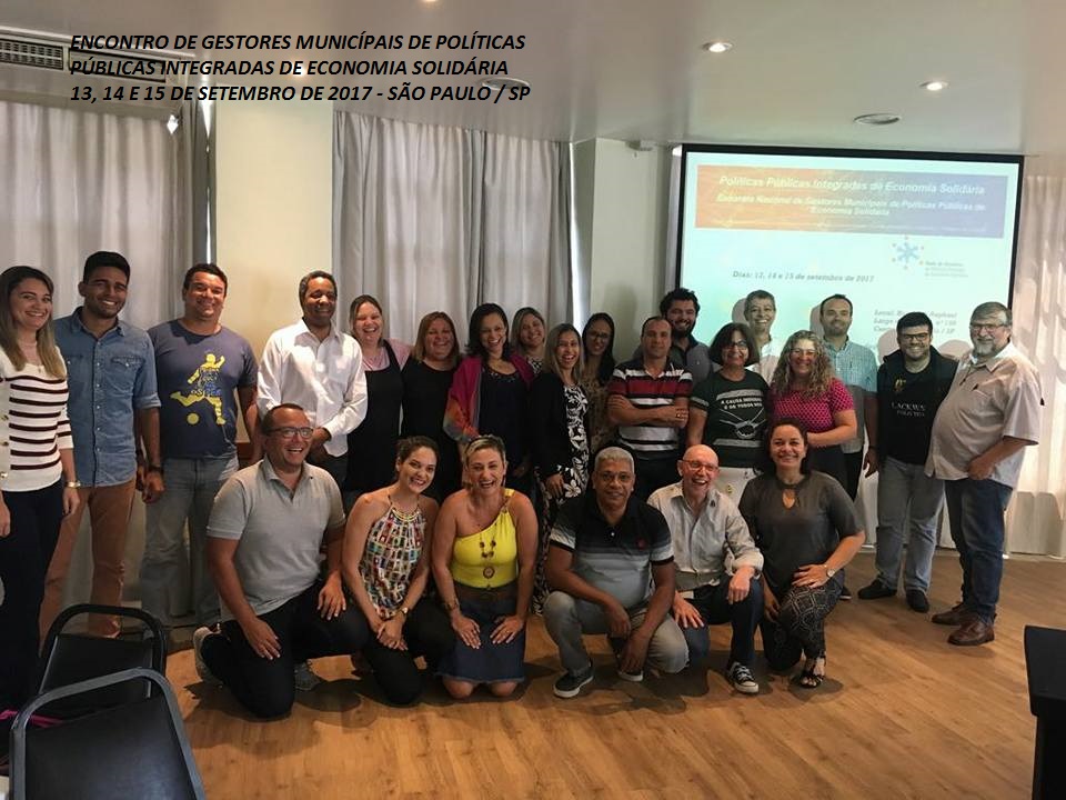 A Rede de Gestores, promoveu o evento “POLÍTICAS PÚBLICAS INTEGRADAS DE ECONOMIA SOLIDÁRIA – ENCONTRO NACIONAL DE GESTORES MUNICIPAIS DE POLÍTICAS PÚBLICAS INTEGRADAS DE ECONOMIA SOLIDÁRIA”, realizado nos dias 13, 14 e 15 de setembro de 2017, no Hotel San Raphael, localizado no Largo do Arouche, nº 150, Centro de São Paulo – SP.